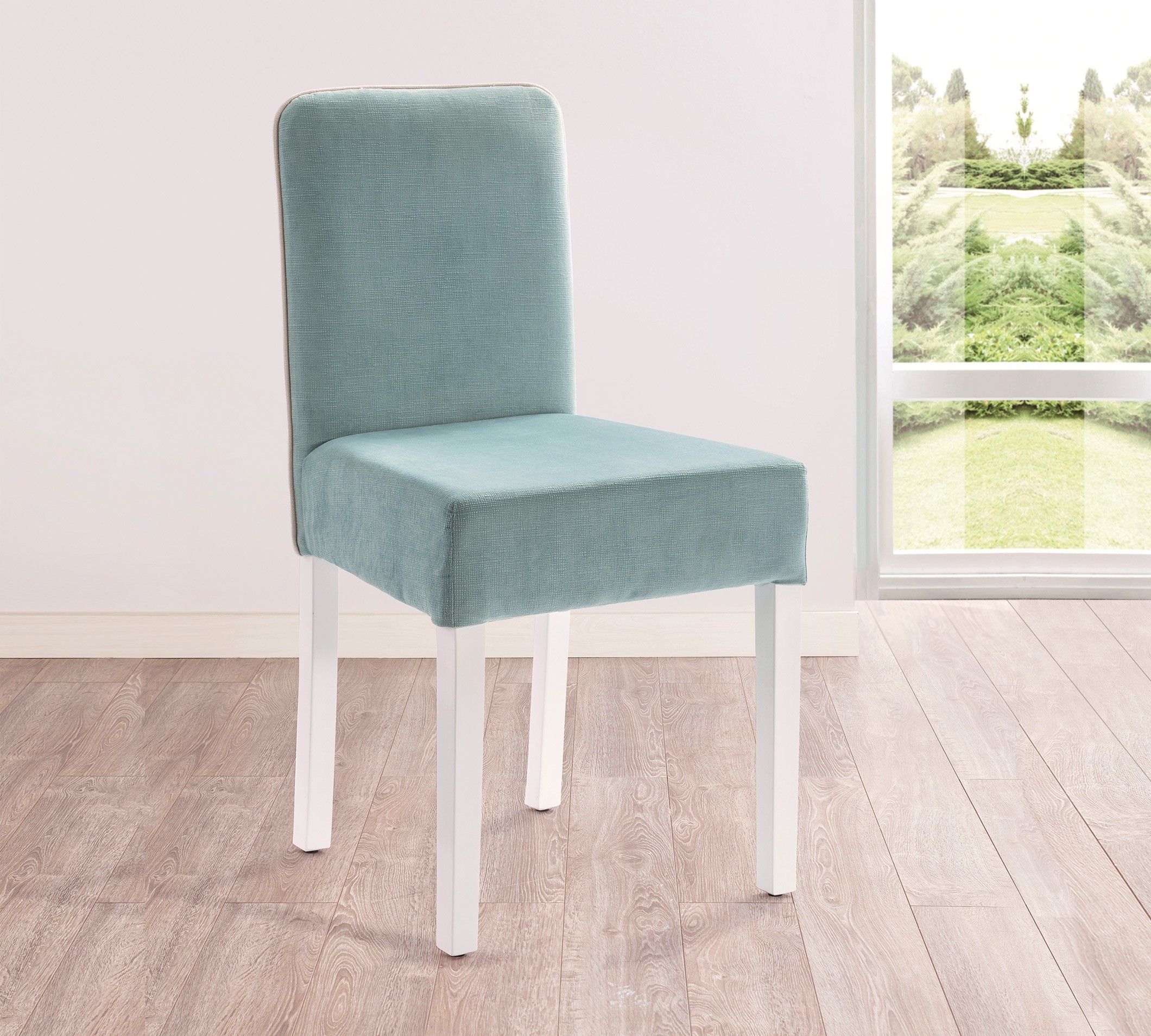 Stuhl mit Stoffbezug in blau