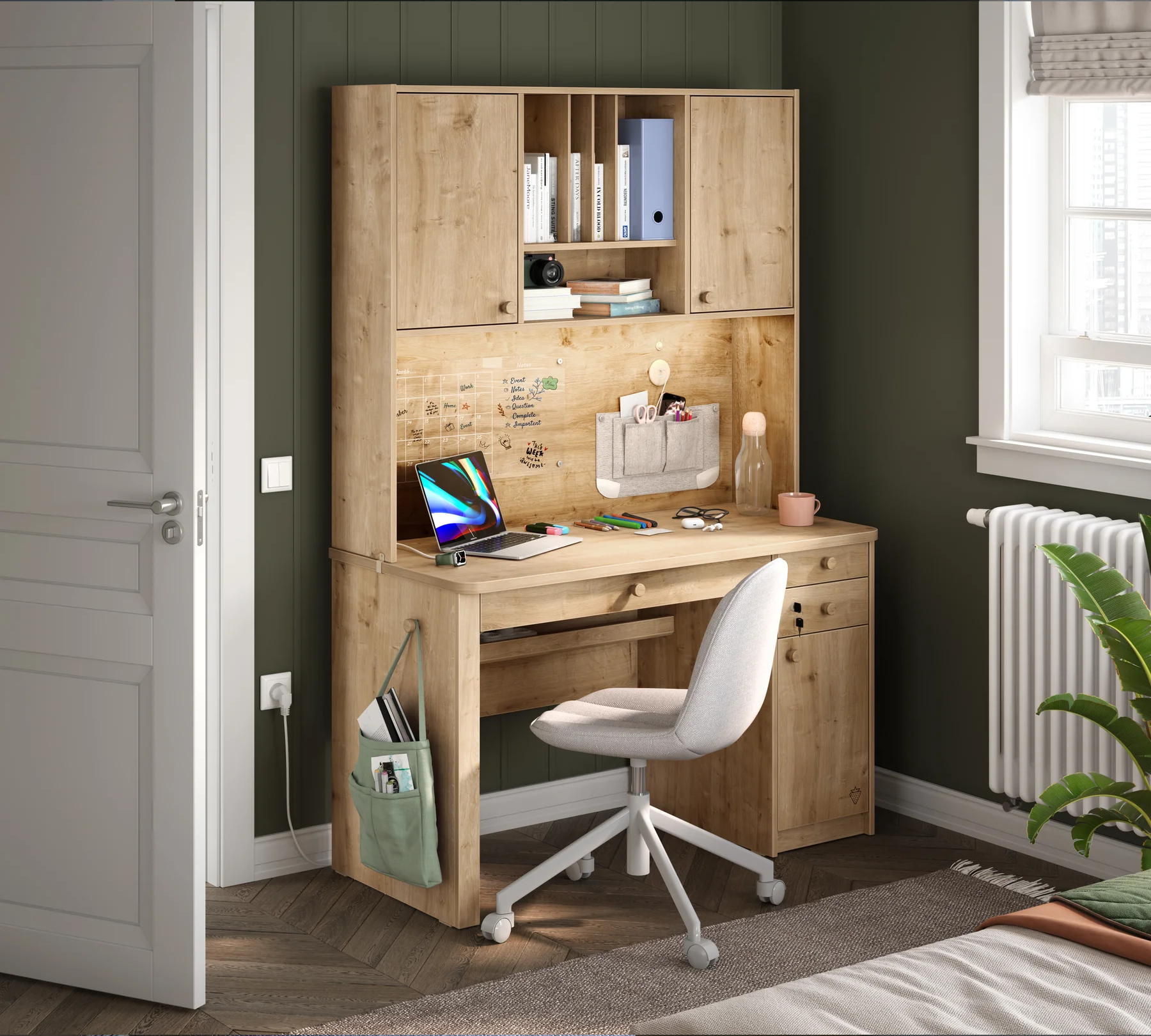 Warum der Mocha Aufsatz? Die Mocha-Serie von Cilek steht für zeitloses Design, das mit dem Kind mitwächst. Der Aufsatz nutzt die vertikale Fläche optimal aus, sodass die eigentliche Tischplatte frei für Hausaufgaben, Zeichnungen oder den Laptop bleibt.