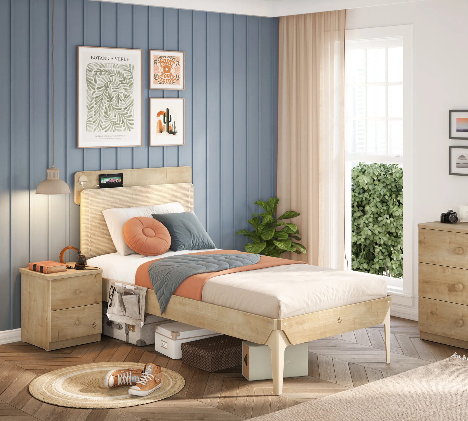 Verwandle das Jugendzimmer in eine stilvolle Wohlfühloase mit dem Jugendbett „Mocha Modern“ von Cilek. Dieses Bett kombiniert eine natürliche Eichen-Optik mit modernen, minimalistischen Akzenten und fügt sich dank seines schlichten Designs perfekt in jedes moderne Einrichtungs-Konzept ein – egal ob für Jungen oder Mädchen.