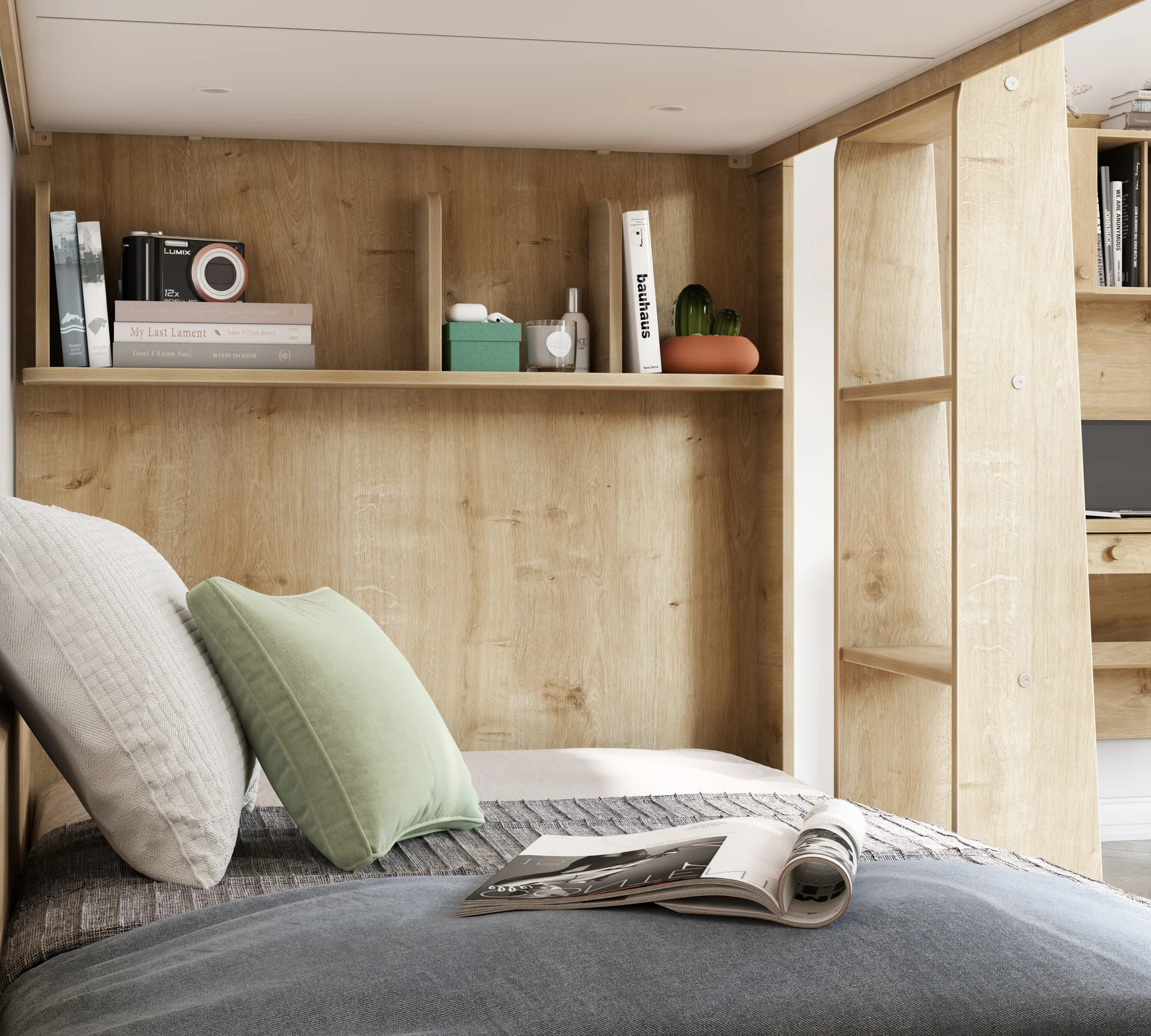 Optional: Ergänzen Sie das Bett mit dem passenden Mocha Bettkasten für einen dritten Schlafplatz oder zusätzlichen Stauraum.