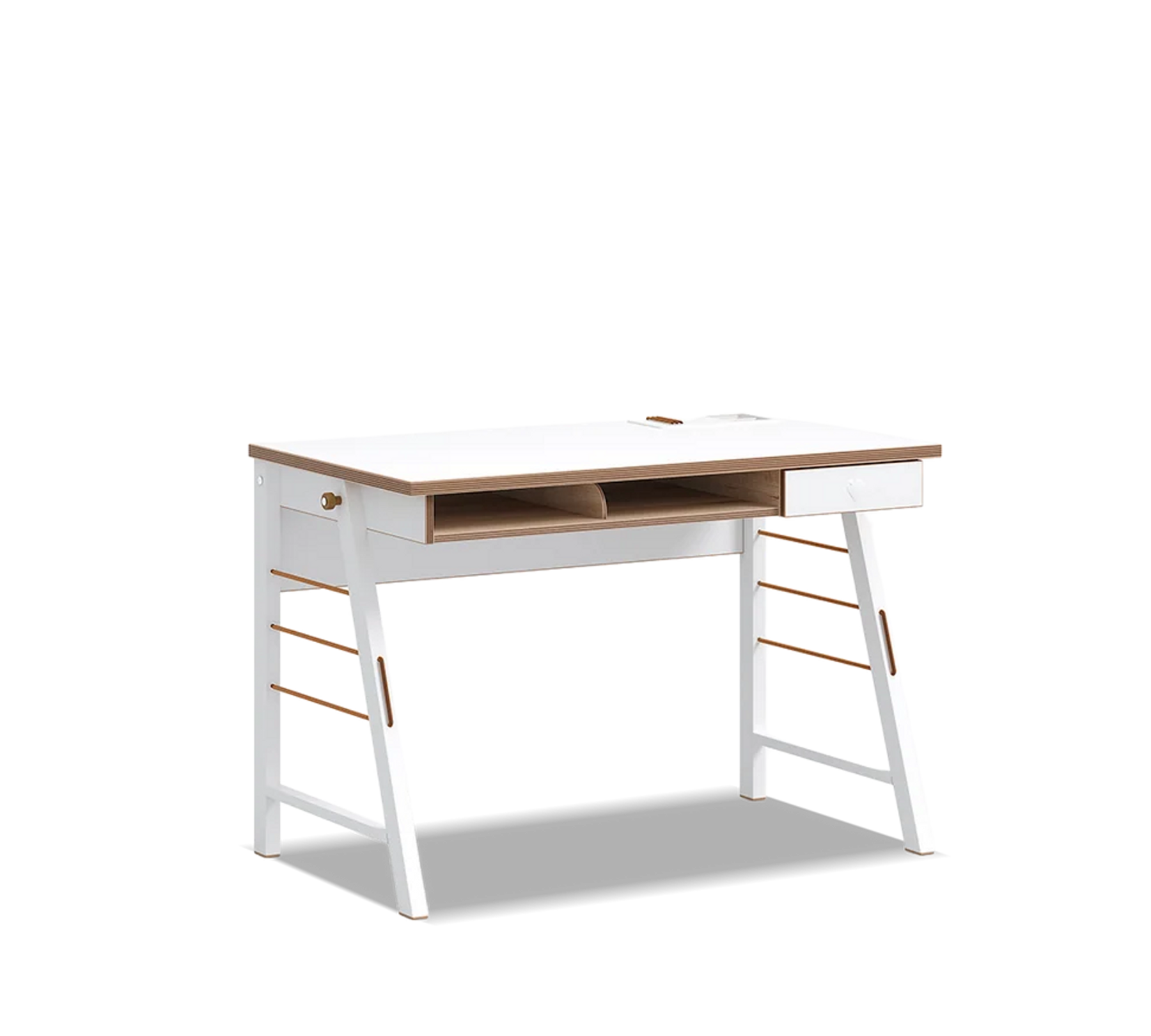 Ordnung ist die halbe Miete – deshalb bietet der Modera Schreibtisch intelligente Stauraumlösungen direkt am Arbeitsplatz. Er verfügt über zwei geräumige Schubladen, zwei offene Fächer und ein Türfach. Ein besonderes Highlight ist der integrierte Stifte-Organizer in der Schublade unter der Arbeitsfläche, der dafür sorgt, dass Schreibutensilien immer griffbereit und sortiert sind.