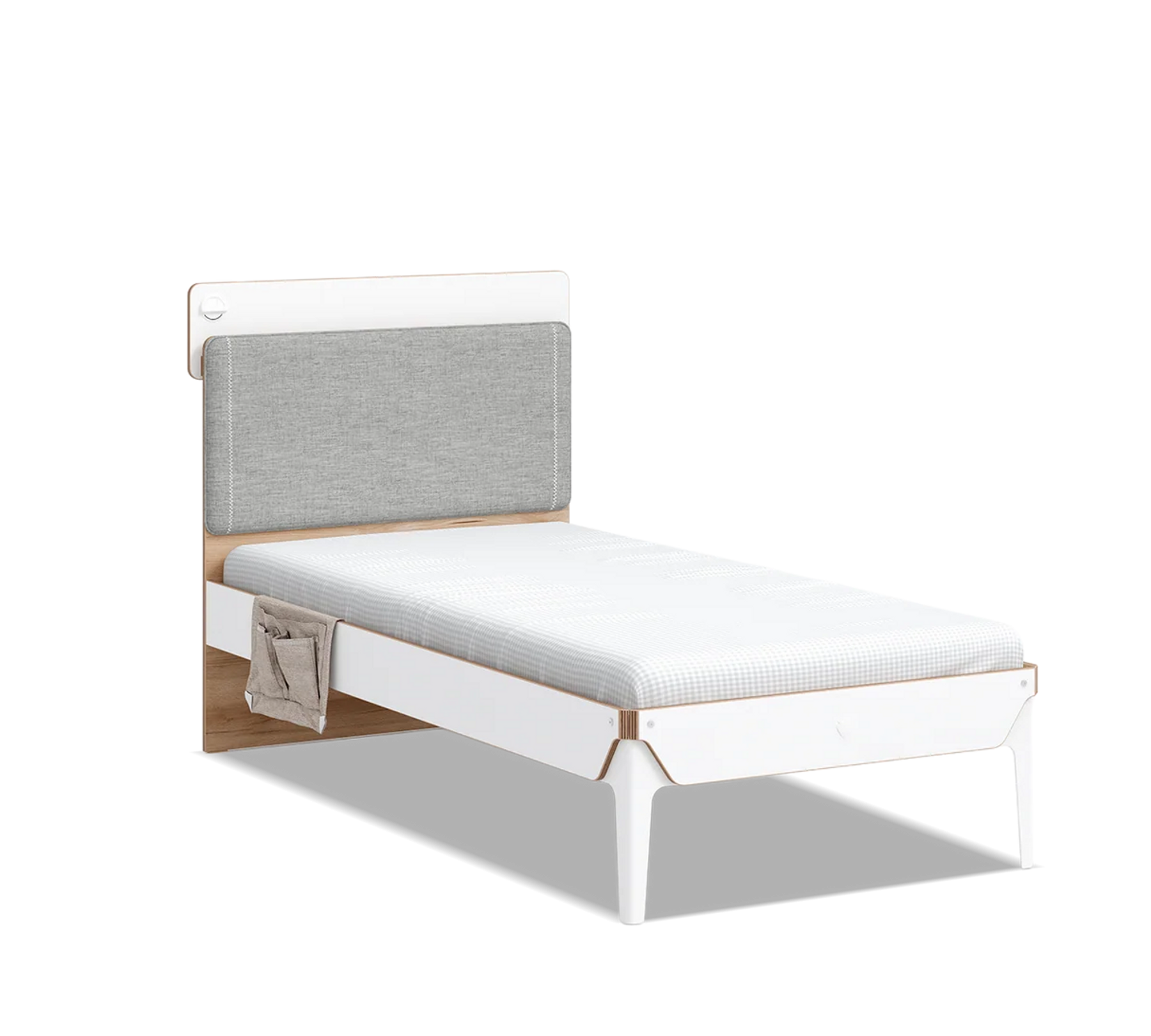 Ein modernes Zimmer kommt nicht ohne Technik aus. Deshalb verfügt das Modera Bett über einen integrierten USB-Anschluss direkt am Kopfteil. So lassen sich Smartphone, Tablet oder E-Reader bequem über Nacht aufladen, ohne dass lästige Kabel quer durch den Raum gezogen werden müssen. Das gepolsterte Kopfteil in dezentem Grau bietet zudem den perfekten Komfort für gemütliche Leseabende oder zum entspannten Streamen von Serien.