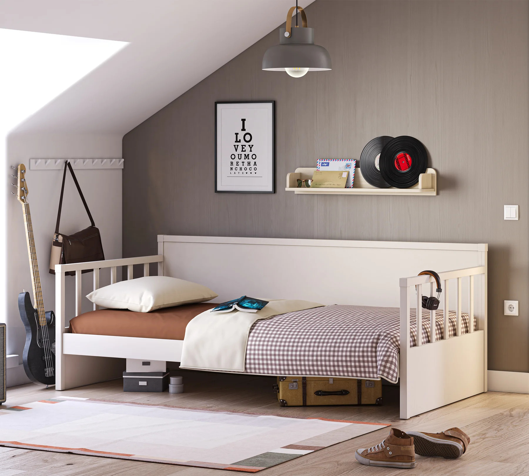 Elegance Tagesbett in Creme bietet mit seiner natürlichen Optik einen unterhaltsamen Lebensraum. Mit einer Tragfähigkeit von 130 kg schafft es einen Schlafplatz, der die Entwicklung von Kindern fördert und ihre Fantasie anregt. Diese Betten wurden so konzipiert, dass sie von der frühen bis zur späten Kindheit genutzt werden können. Dank der Absturzsicherung und des bodennahen Designs wird ein sicheres Schlaferlebnis angestrebt. Das Bett kann einzeln erworben oder optional mit einem Bettkasten ergänzt werden. So erhalten Sie mit dem Heranwachsen Ihres Kindes entweder einen zweiten Schlafplatz oder einen idealen Stauraum.