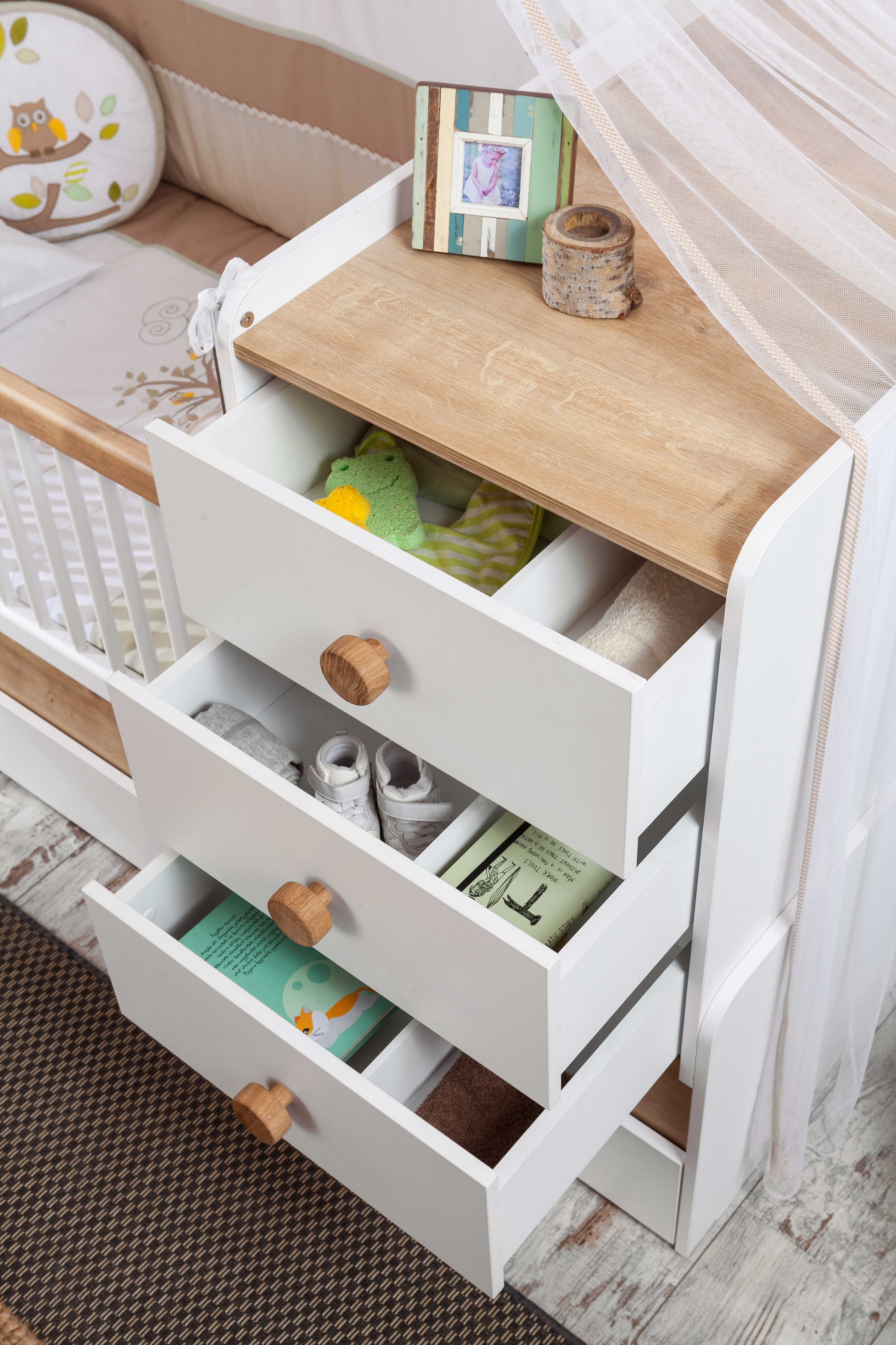 Ein Babybett das mitwächst, ist in jeder Hinsicht eine lohnende Investition! Wunderschöne Möbelstücke, die unter einander wunderbar kombiniert werden können! Die Natura Baby Möbelkollektion von Cilek überrascht mit sanften warmen Tönen und abgerundeten Ecken. Das beruhigende Holzdekor harmoniert perfekt zum matten Weiß. Doch erst die Rundungen sorgen für den eleganten Auftritt. Ein perfektes Babyzimmer für alle Liebhaber von natürlichem Charme. Und eine tolle Ergänzung zum Fairy Baby Bett von Cilek.