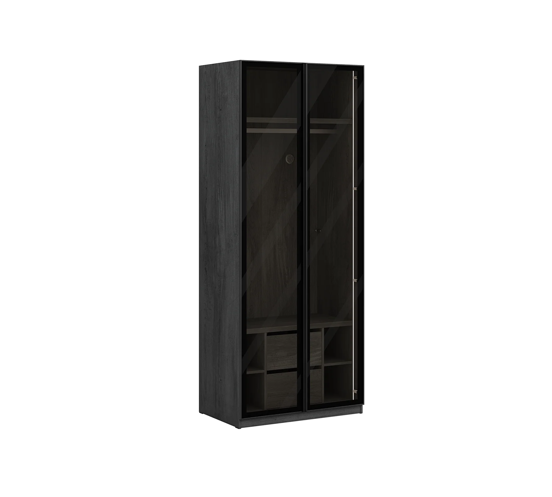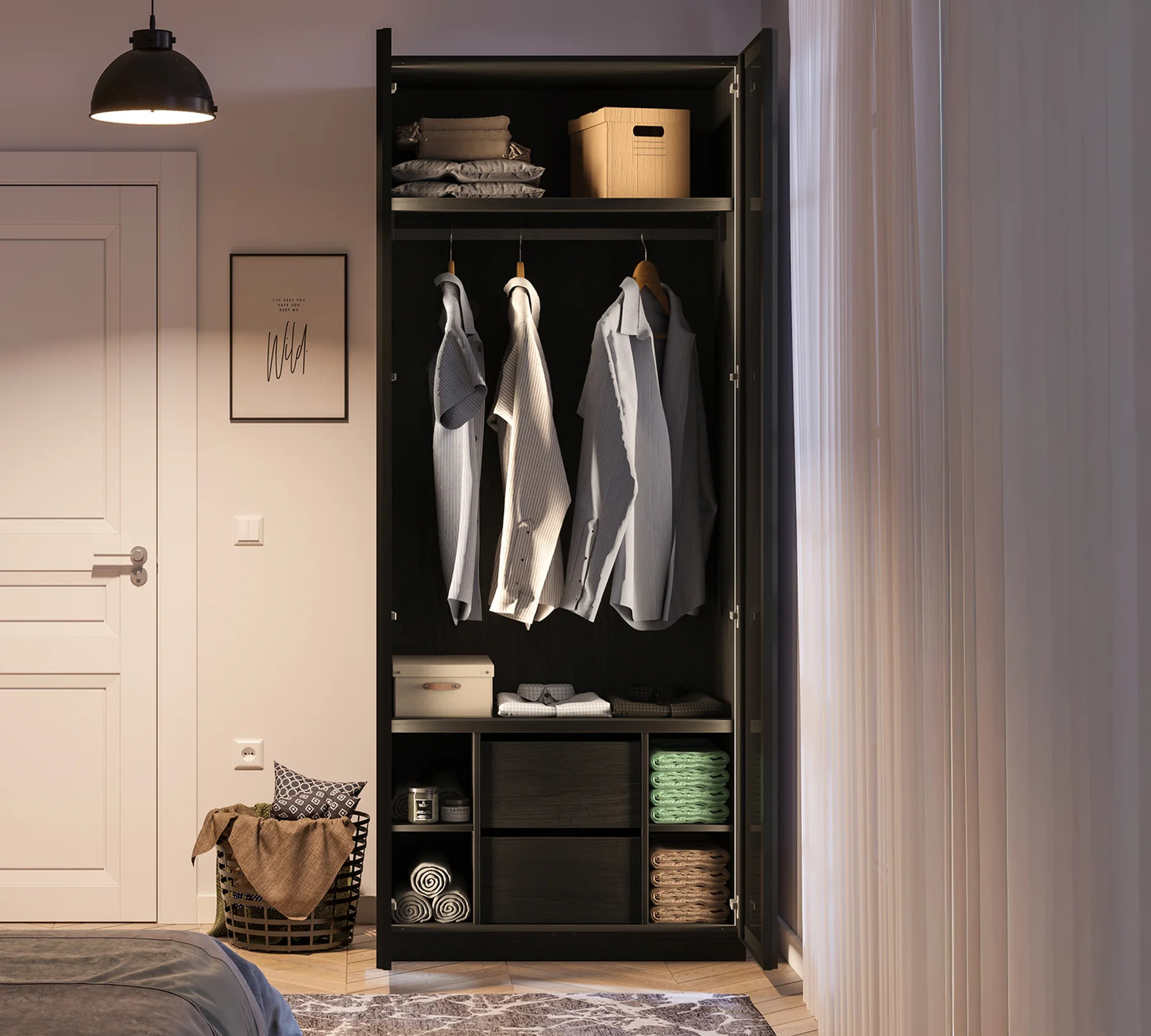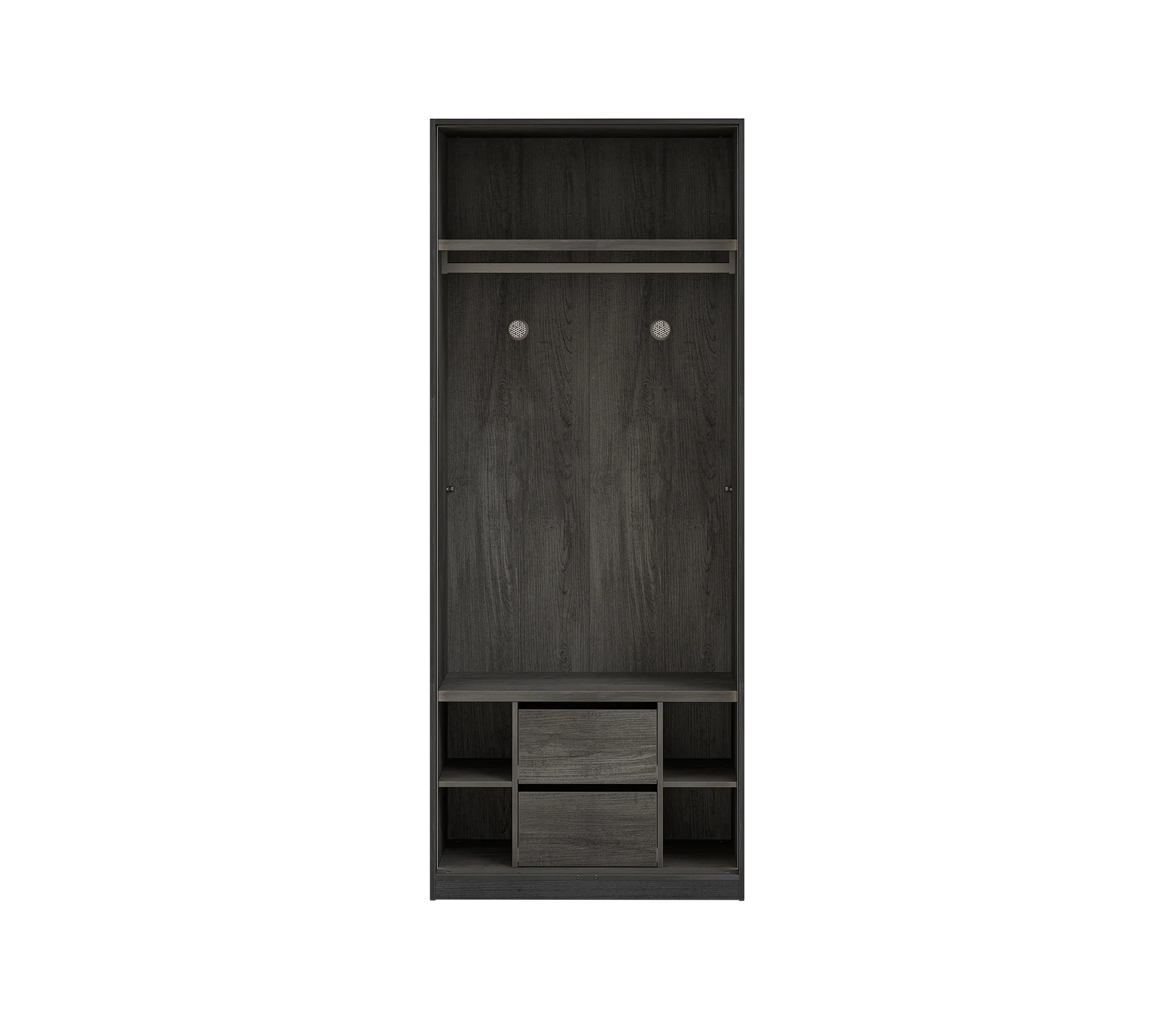 Einteilung: 1 Kleiderstange und 2 Einlegeböden, 2 Schubladen, 4 offene Fächer