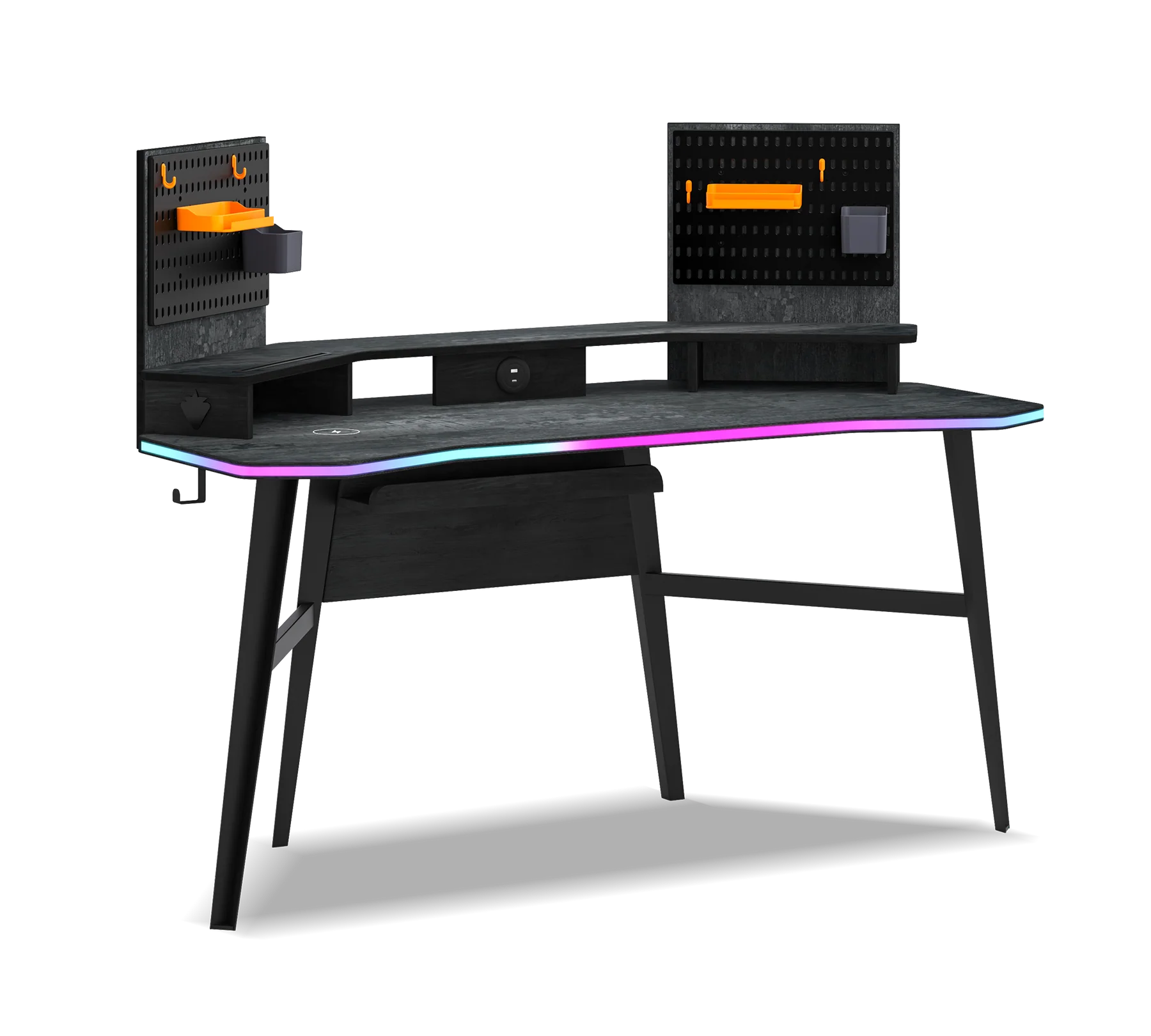 - Zusatzfeatures: Praktische Haken für Kopfhörer oder Taschen sowie eine spezielle Halterung für Tablets oder Stifte sorgen für einen aufgeräumten Look.