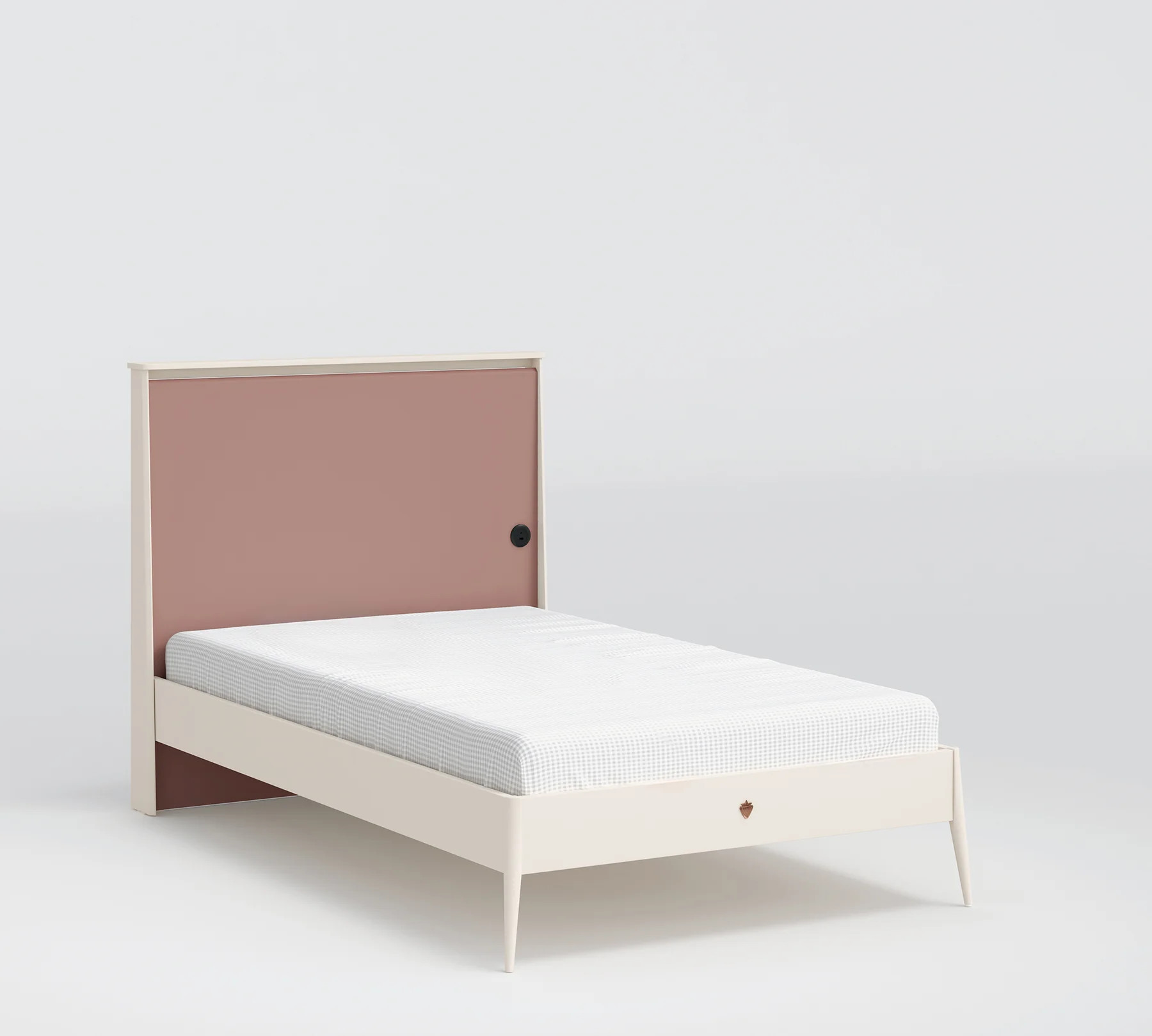 Das Elegance Bett mit schlichtem Kopfteil, gestaltet in der harmonischen Kombination aus Rose und Creme, bietet ein modernes Design, das Jugendzimmern für Mädchen Eleganz und Wärme verleiht. Die geradlinige Struktur des Kopfteils fügt der romantischen Linie der Elegance-Serie einen minimalistischen Touch hinzu und schafft einen sowohl ästhetischen als auch schlichten Schlafbereich.