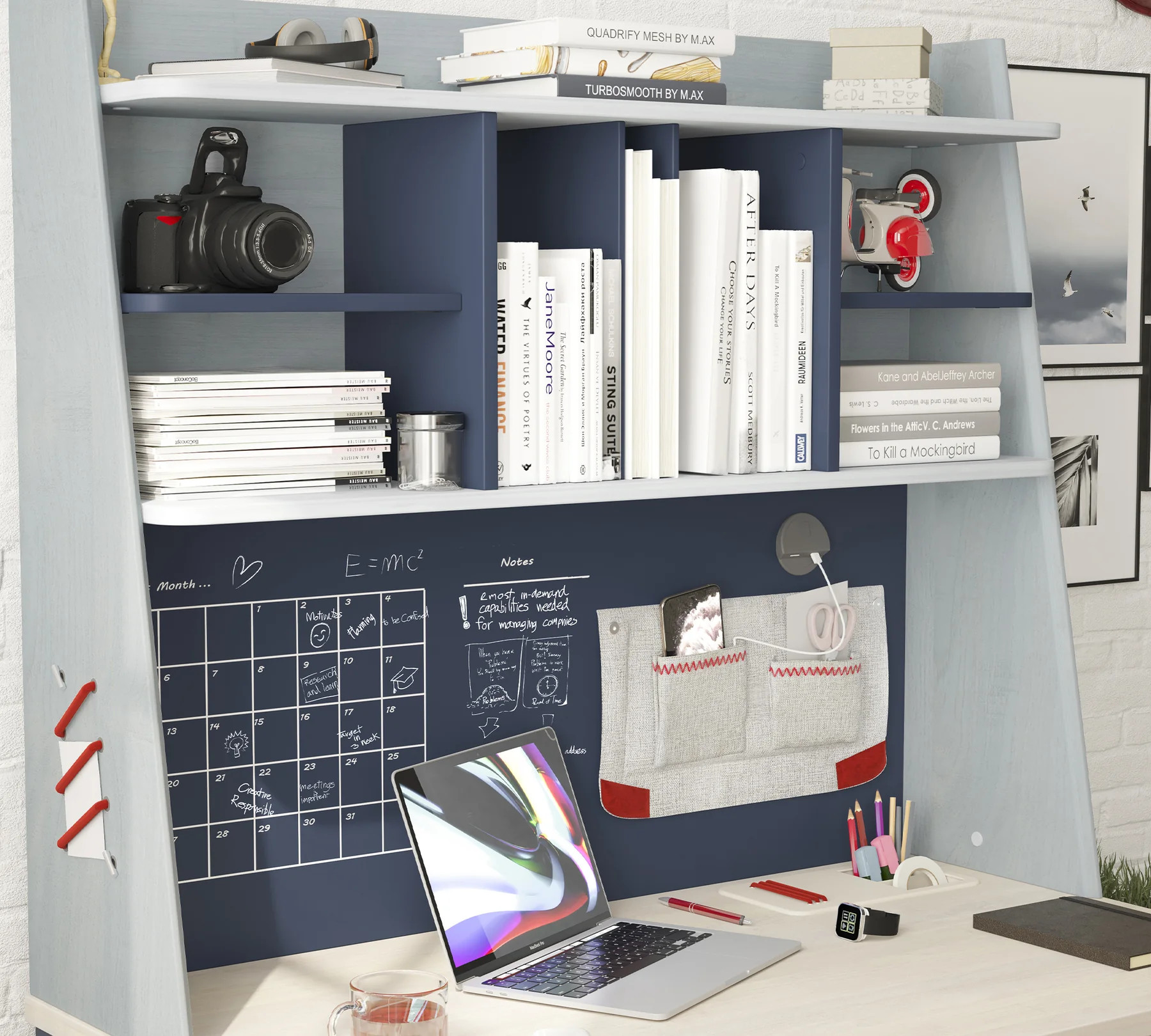 Erweitern Sie den Arbeitsplatz Ihres Kindes mit dem Cilek Trio Tisch-Aufsatz. Dieses funktionale Modul in der hohen Ausführung wurde speziell entwickelt, um Ordnung und Stil in das Jugendzimmer zu bringen. Durch das moderne Design in Grau- und Naturholztönen mit dezenten blauen Akzenten fügt sich der Aufsatz perfekt in die dynamische Trio-Serie ein.