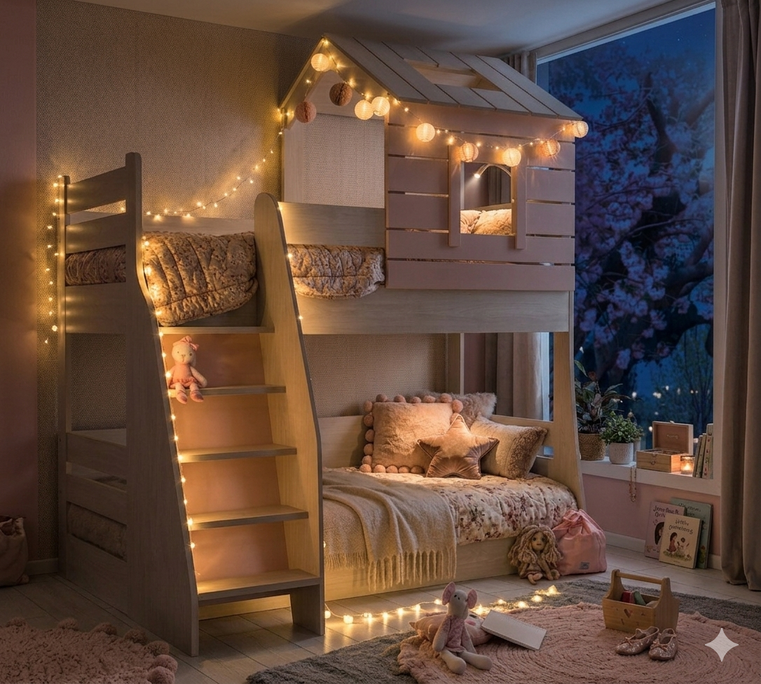 Dieses Etagebett PINK HOUSE ist ein Traum für Ihre Mädchen. Nicht nur zum schlafen können sich Ihre Kinder wohlfühlen, sondern auch zum Spielen laden beide Etagen ein. Die Fenster und das Dach im oberen Bett bieten dem Kind schutz und spielspaß zugleich. Ihr Kind kann sicher über die breiten Stufen Auf-und Absteigen. Das perfekte Bett für ein Mädchenzimmer mit wenig Platz.