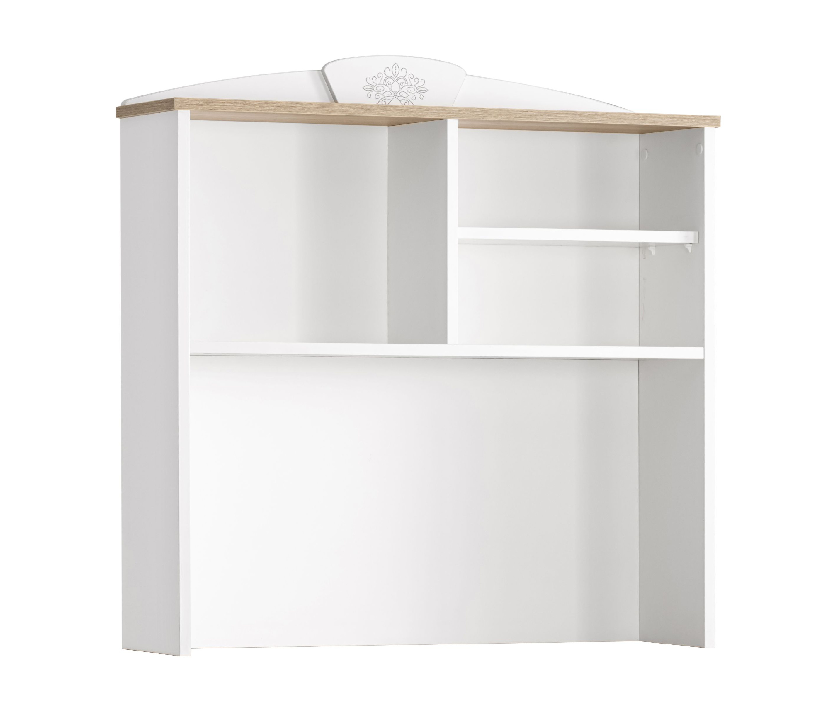 Schreibtisch-Aufsatz mit 3 Regalfächern und geschwungenem Kopfteil mit Ornament