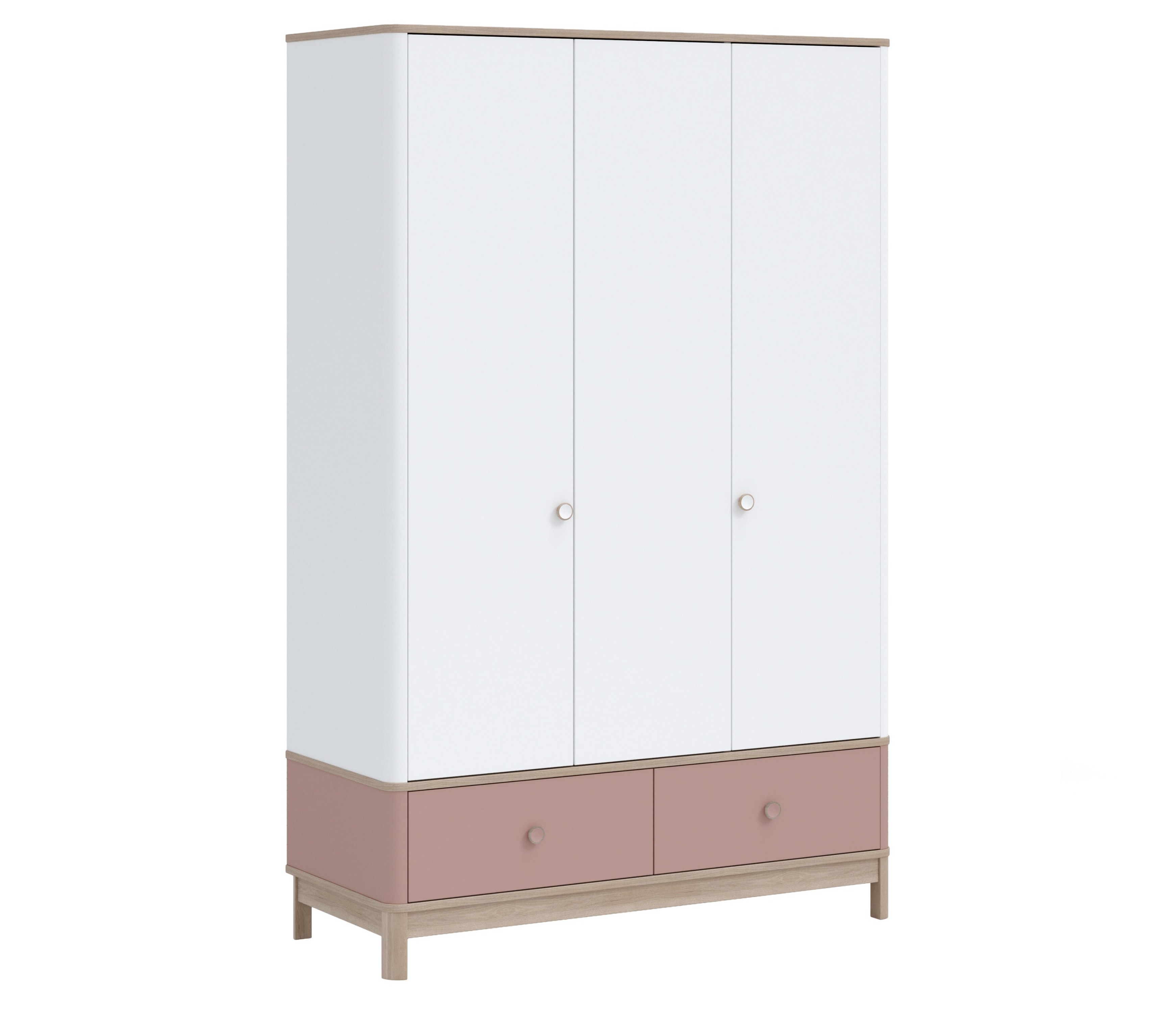 Der 3-türige Schrank BONO PINK von Newjoy mit seinem einladenden und zeitlosen Design in Weiß, Pink und Naturtönen bietet reichlich Stauraum und stellt zugleich ein attraktives Möbelstück dar. Ausgestattet mit zwei Kleiderstangen und elf Regalfächern unterschiedlicher Größe, bietet der Schrank eine umfassende Lösung für die Aufbewahrung. Ergänzt wird das Angebot durch zwei großzügige Schubladen im unteren Bereich, die zusätzlichen Platz bieten. Die Türen, in strahlendem Weiß gehalten, sind mit einem Soft-Close-System ausgestattet, während die Schubladen durch Fronten in Pink akzentuiert werden. Die Verwendung erstklassiger Materialien und die sorgfältige Verarbeitung gewährleisten Langlebigkeit und Robustheit des Schranks.