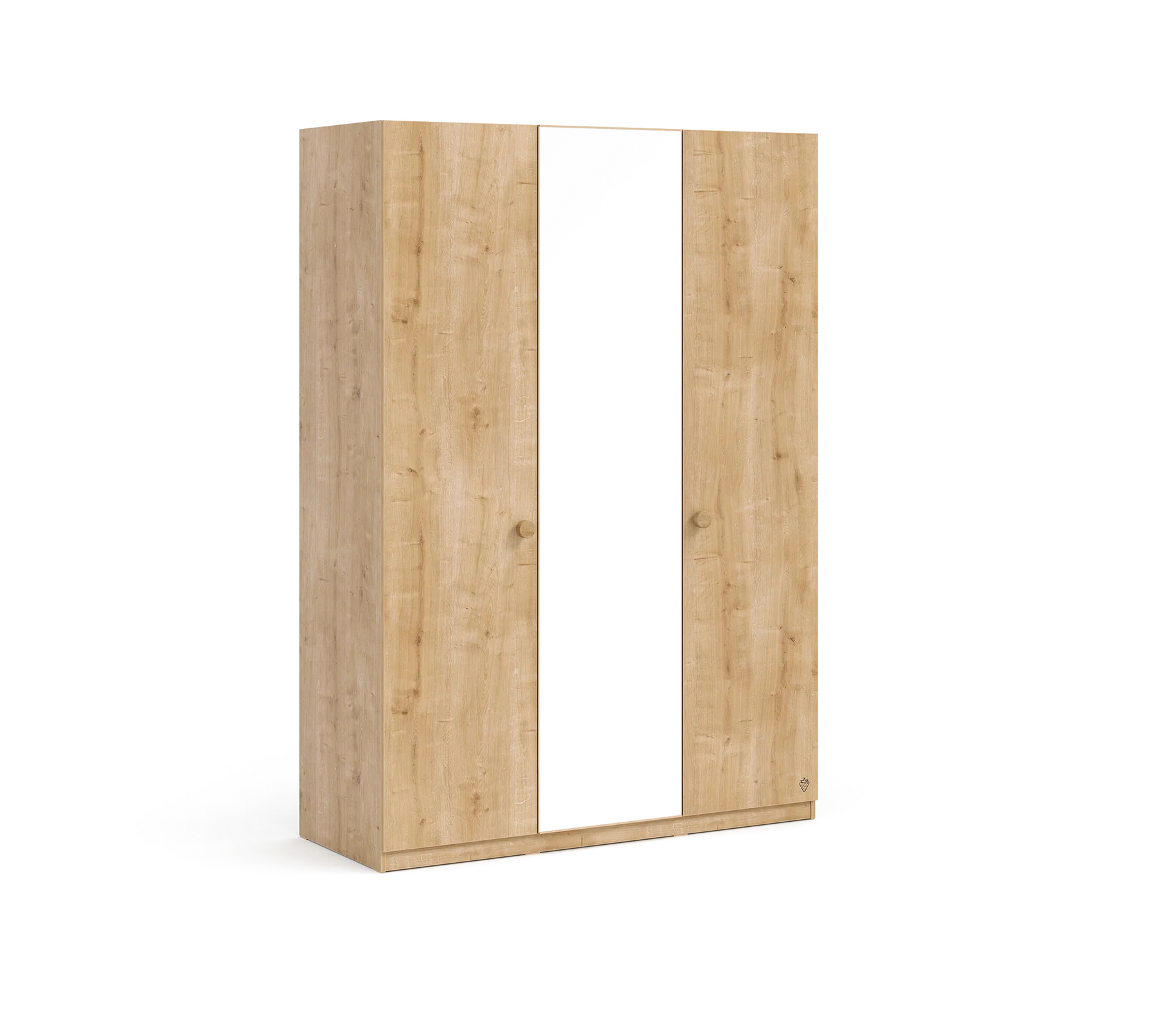 Cilek Mocha Kleiderschrank (3-türig) mit Spiegel – Natürliches Design trifft auf maximalen Stauraum