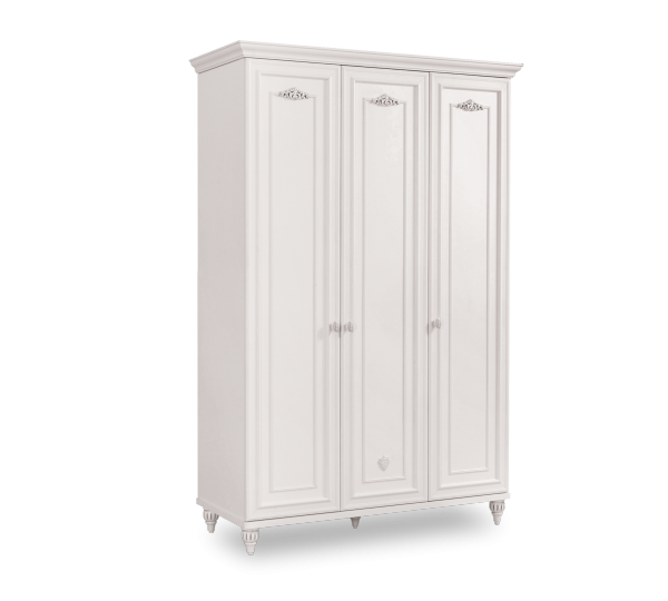 Ein märchenhafter Kleiderschrank für romantische Mädchen und angehende Prinzessinnen. Dieser Traum in Weiß behütet geliebte Kleidungsstücke mit der Würde eines Butlers. Eine Kleiderstange rückt alles ins perfekte Licht.